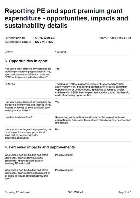 - the profile of PE and sport is raised across the school as a tool for whole-school improvement