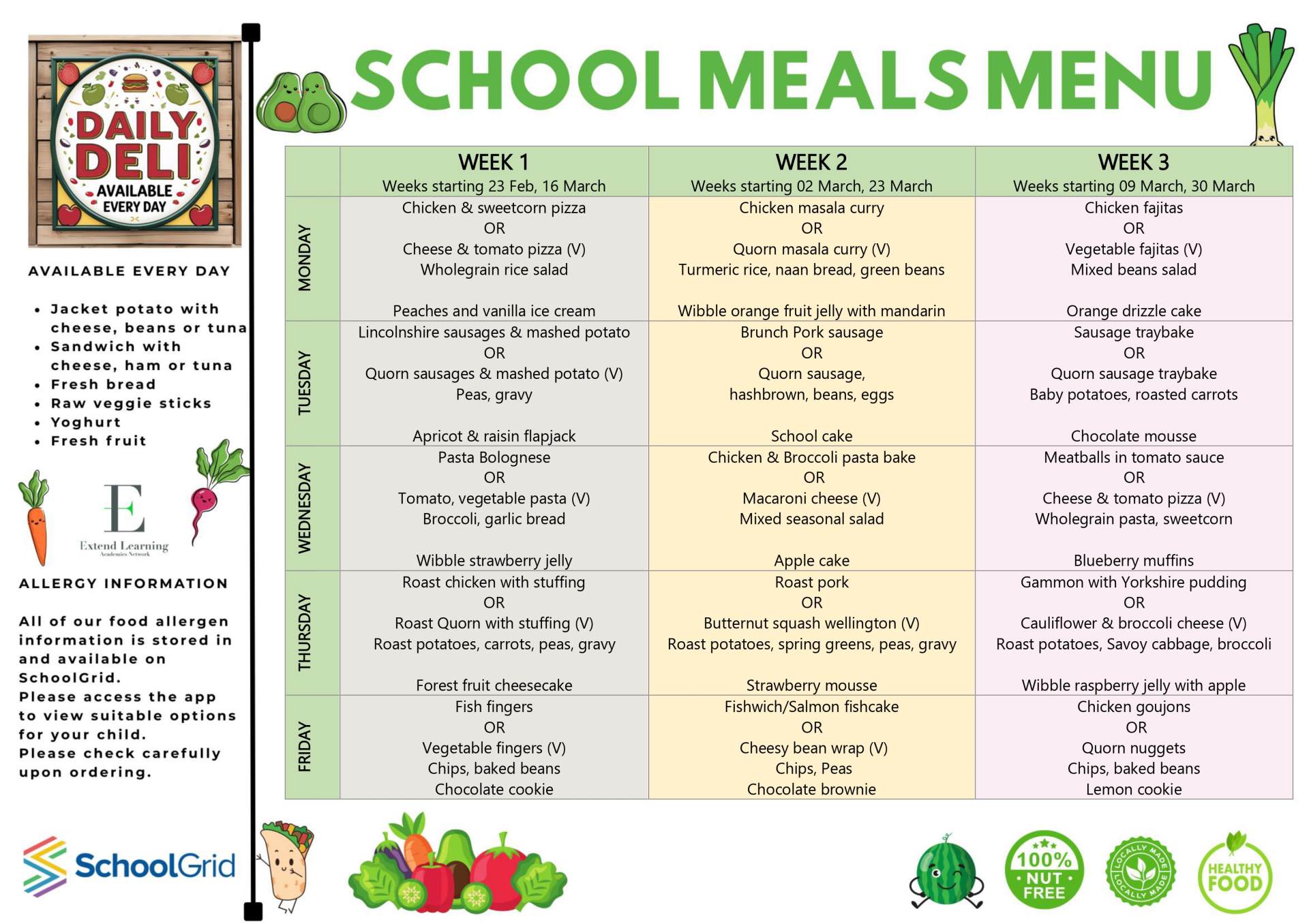 School meals at Locking are provided 'in-house' by ELAN Catering. Our school meals are cooked fresh on the premises in our kitchen. From 2nd September 2025, a school meal is priced at £2.61 per day/per child for those not in receipt of Free School Meals.