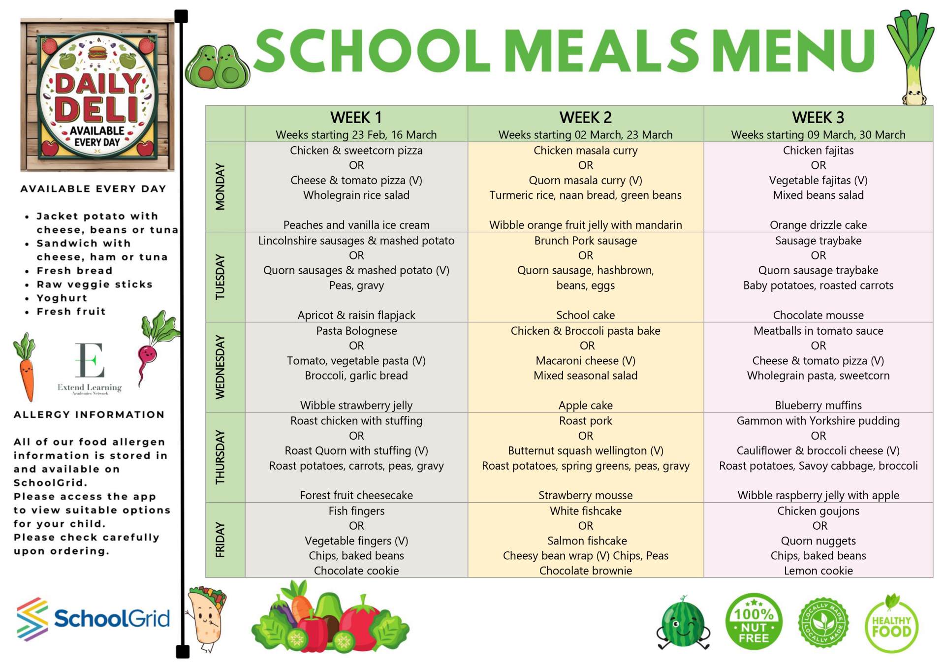 School meals at Locking are provided 'in-house' by ELAN Catering. Our school meals are cooked fresh on the premises in our kitchen. From 2nd September 2025, a school meal is priced at £2.61 per day/per child for those not in receipt of Free School Meals.